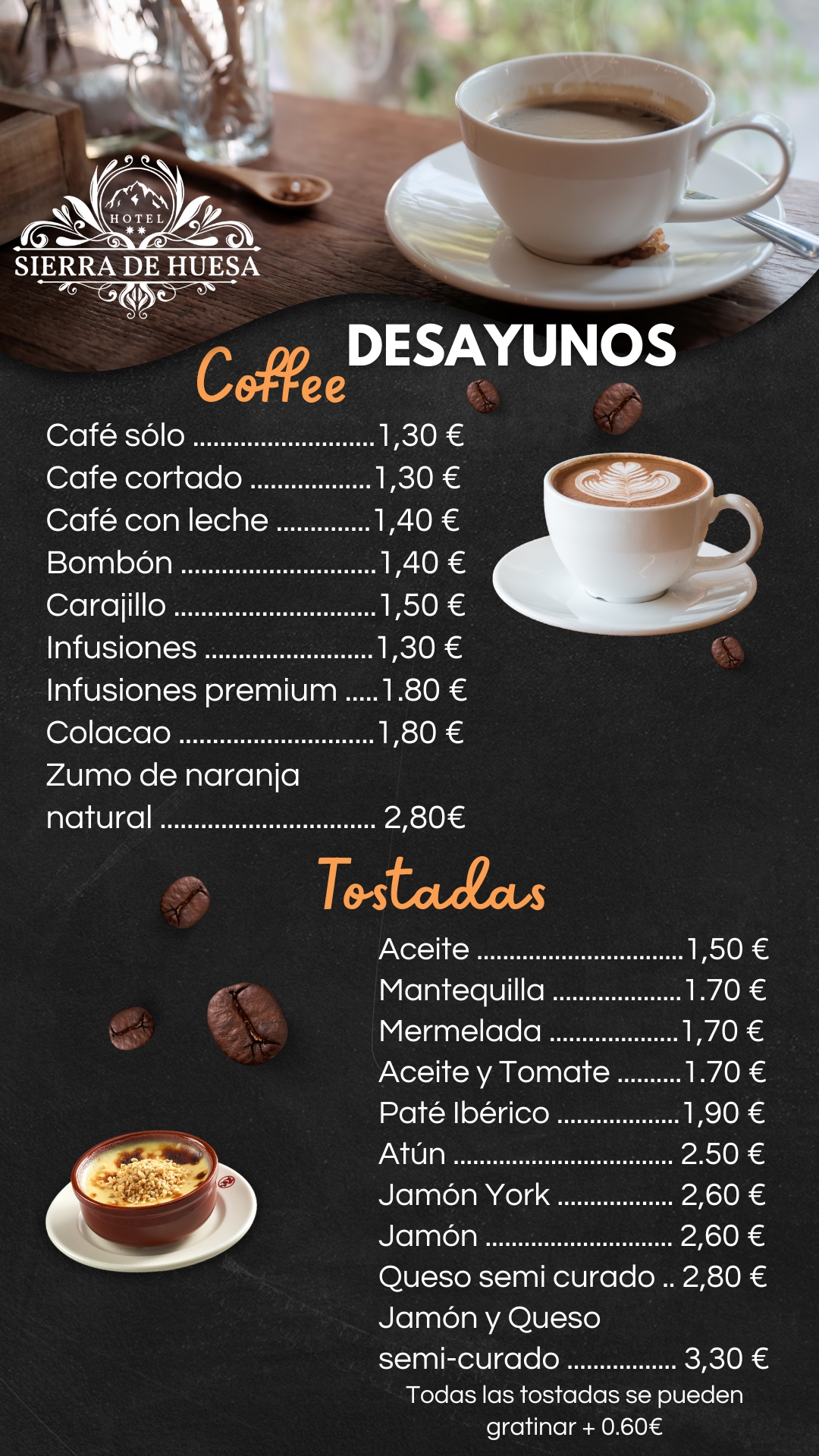 • Menú de desayunos