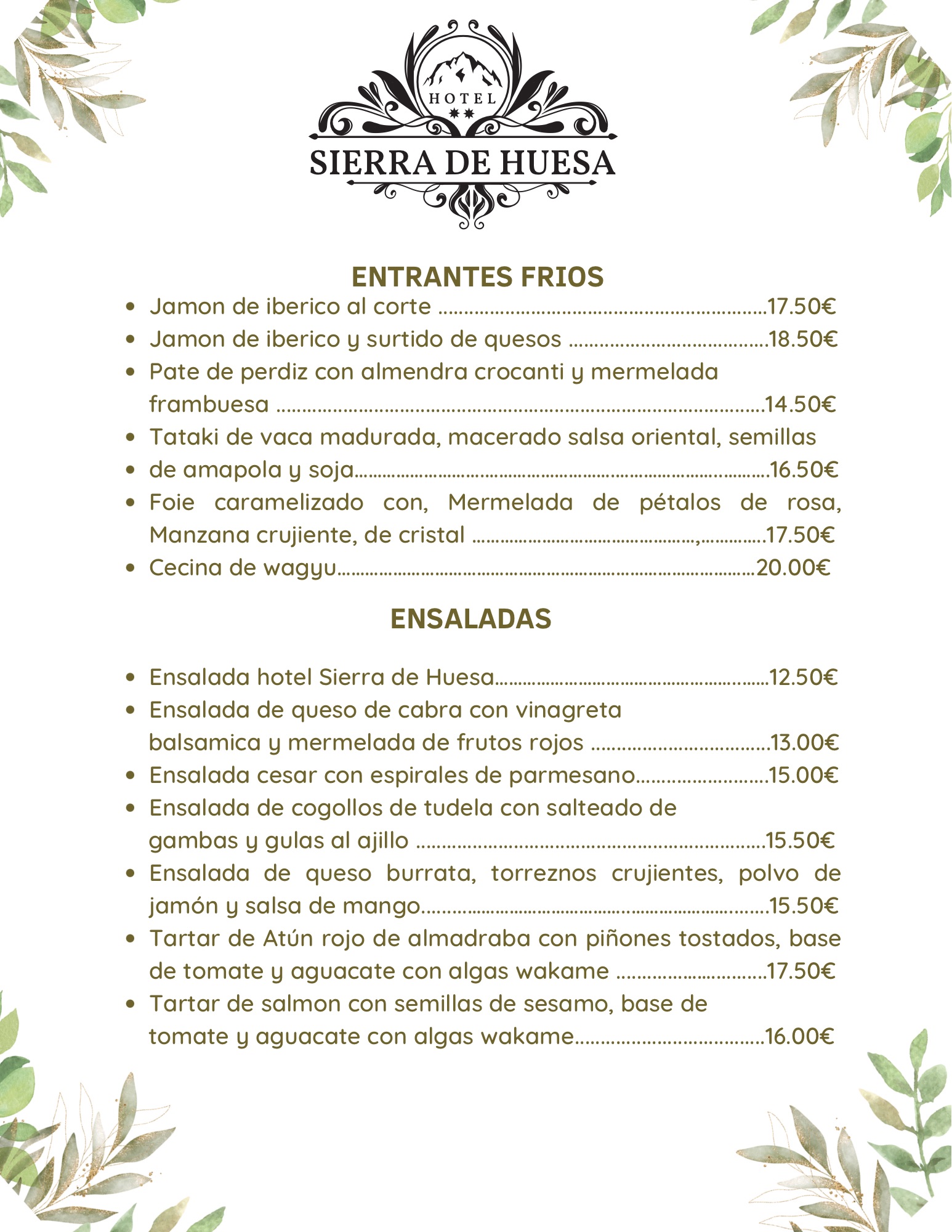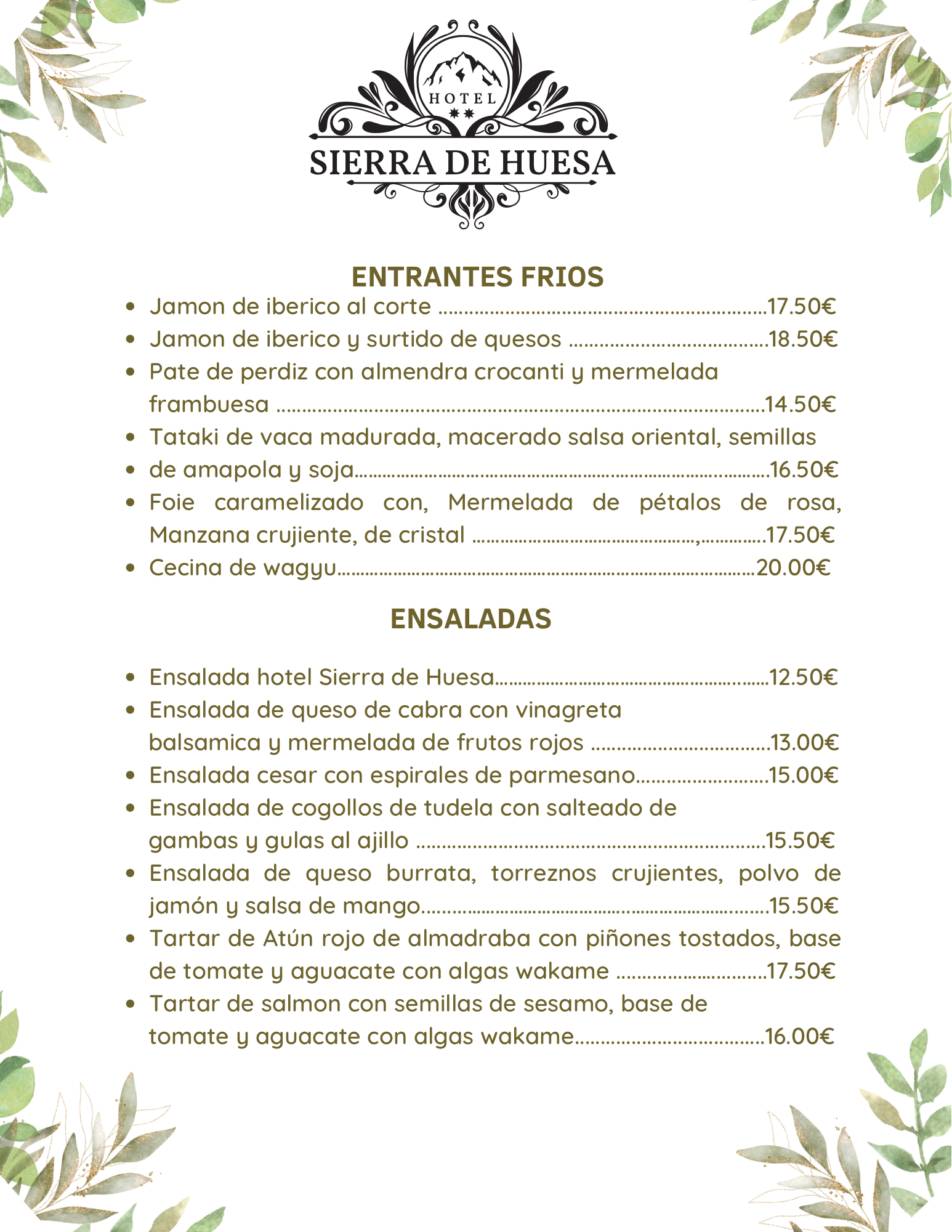 • Menú del día
