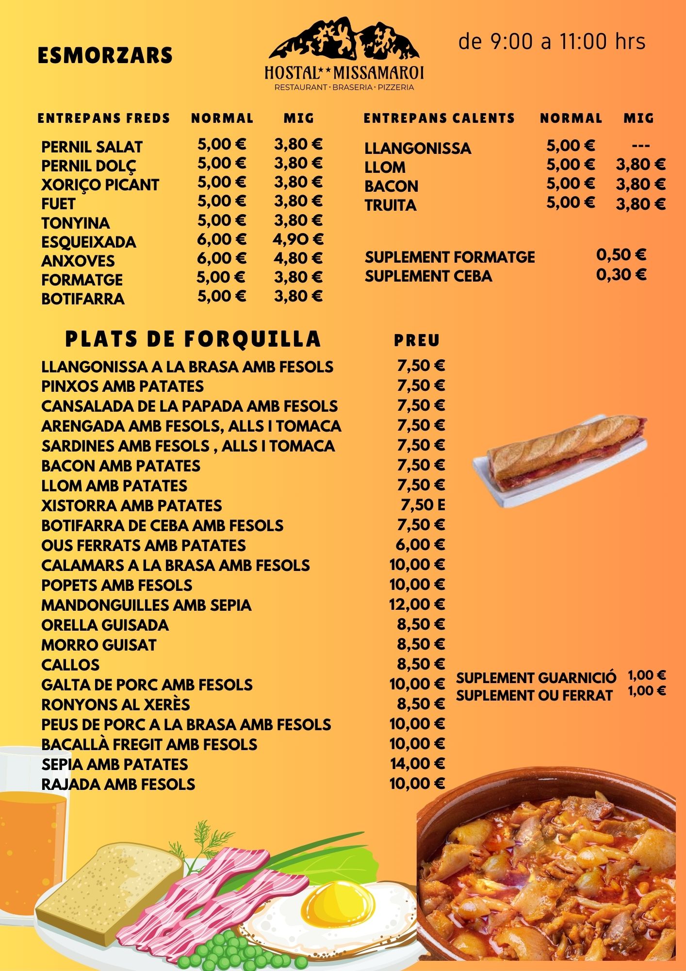 • Menú de desayunos